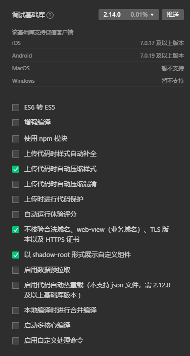 开发者工具版本 1.03.2011120 基础库版本2.14.0