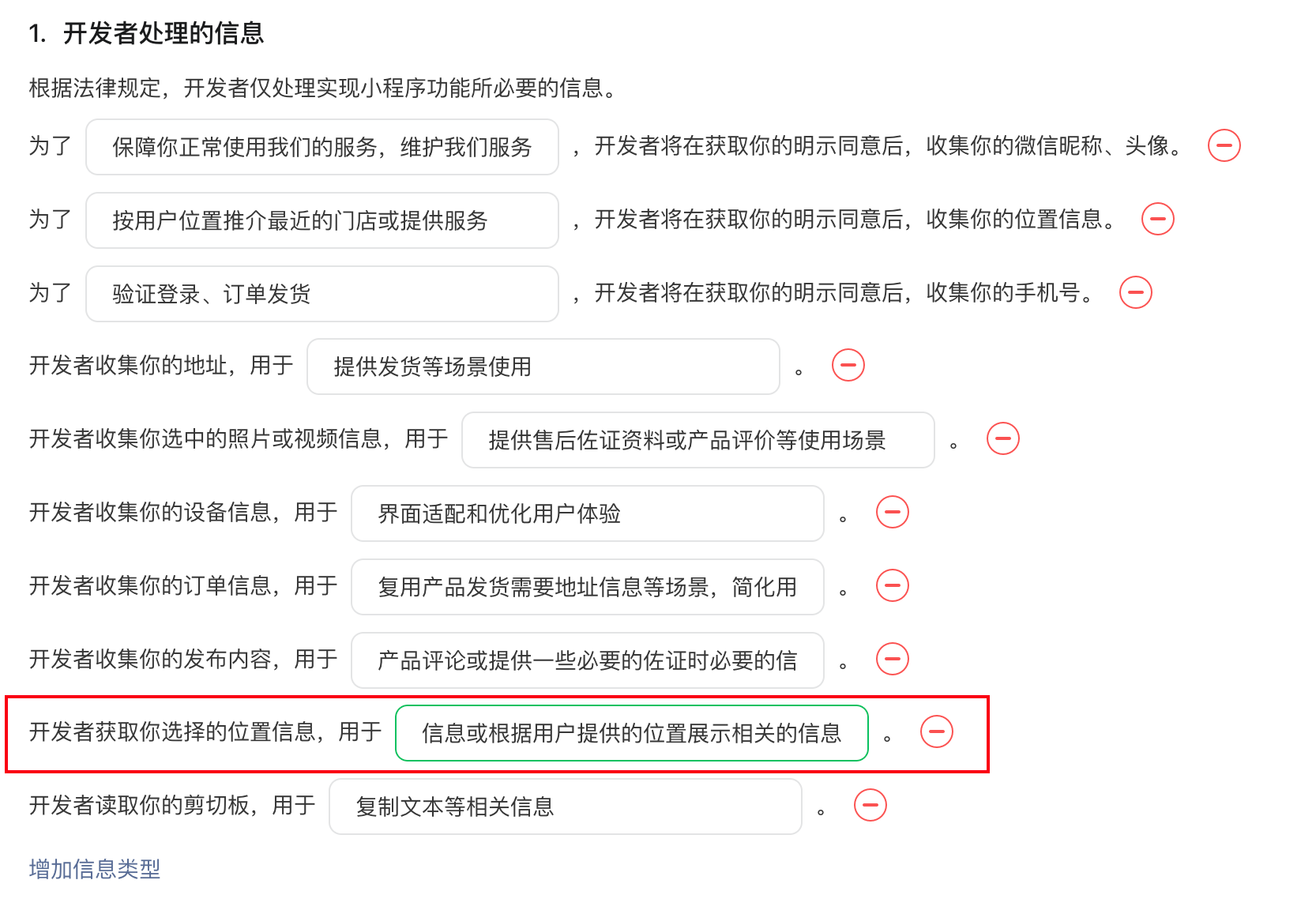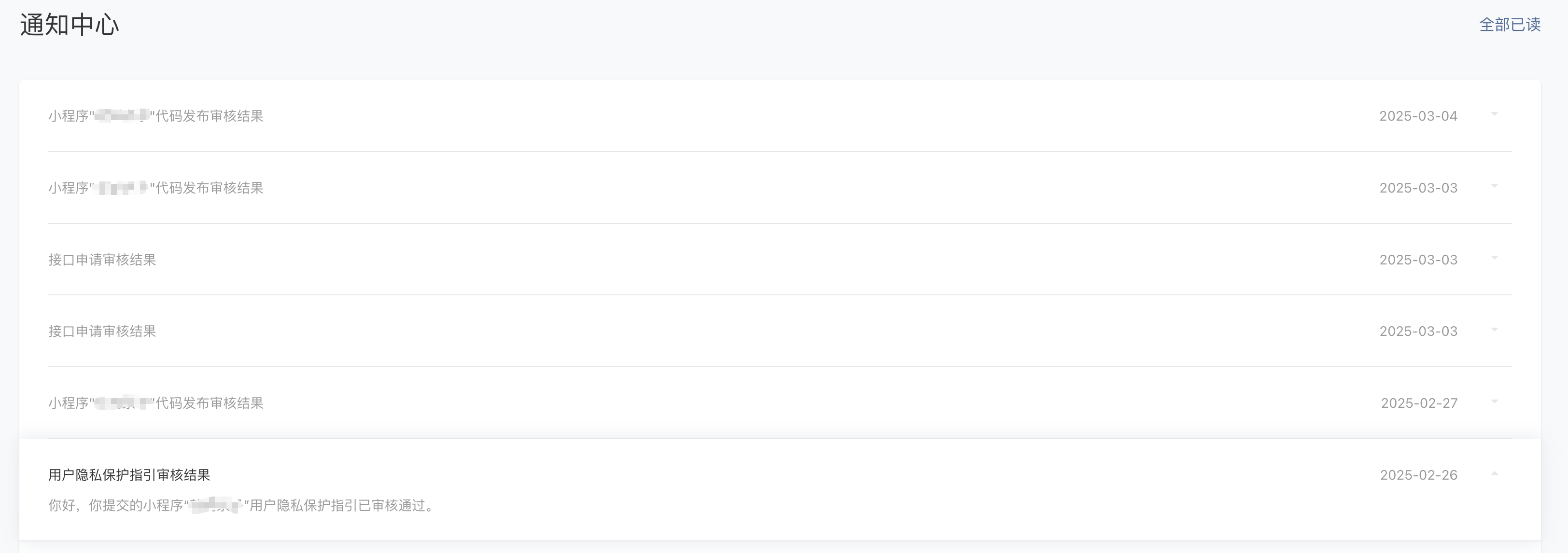 你好,请先检查是否更新或完善小程序《用户隐私保护指引》。可前往“https://mp.weixin.qq.com/登录你的小程序-设置-服务内容声明模块”或代码提审时完善《用户隐私保护指引》。若于到期未完善,将回收小程序隐私接口调用权限,建议你尽快完善小程序得《用户隐私保护指引》。可参考:https://developers.weixin.qq.com/community/develop/doc/00062a6d514c88baacdf52e8a56009