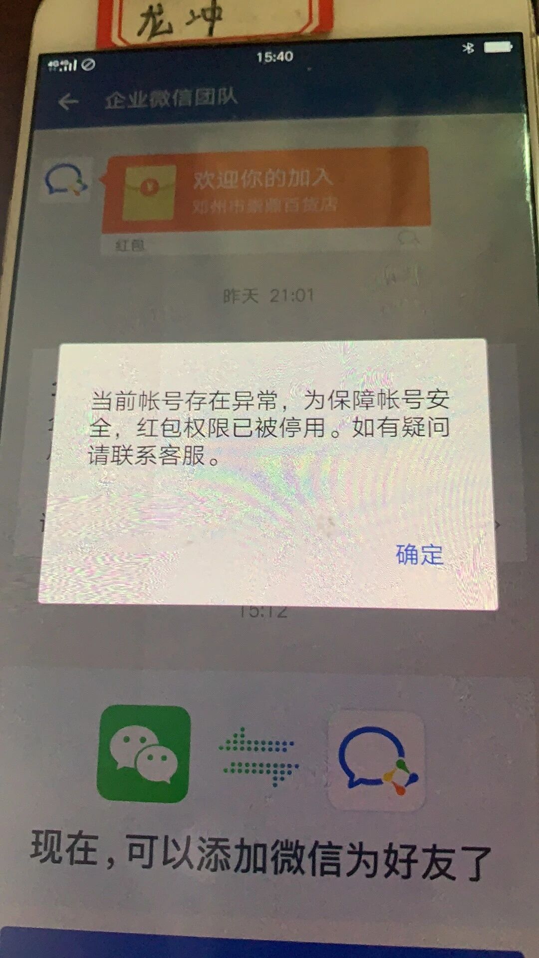 刚注册的企业微信,刚登陆,显示账号异常,红包权限停用是什么意思?