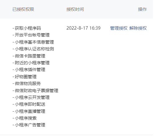 此外,可以通过该接口https://developers.weixin.qq.com/doc/oplatform/openApi/OpenApiDoc/authorization-management/getAuthorizerInfo.html查询对应的公众号或者小程序是否将权限授给第三方哈。