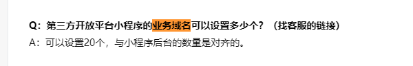 Q:第三方开放平台小程序的业务域名可以设置多少个?(找客服的链接)