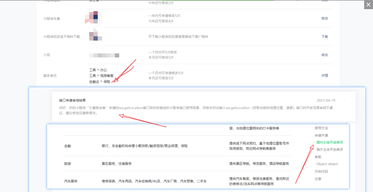 我们公司的小程序属于保险金融行业,申请定位权限,老被驳回不属于开放条目;请问驳回依据是什么