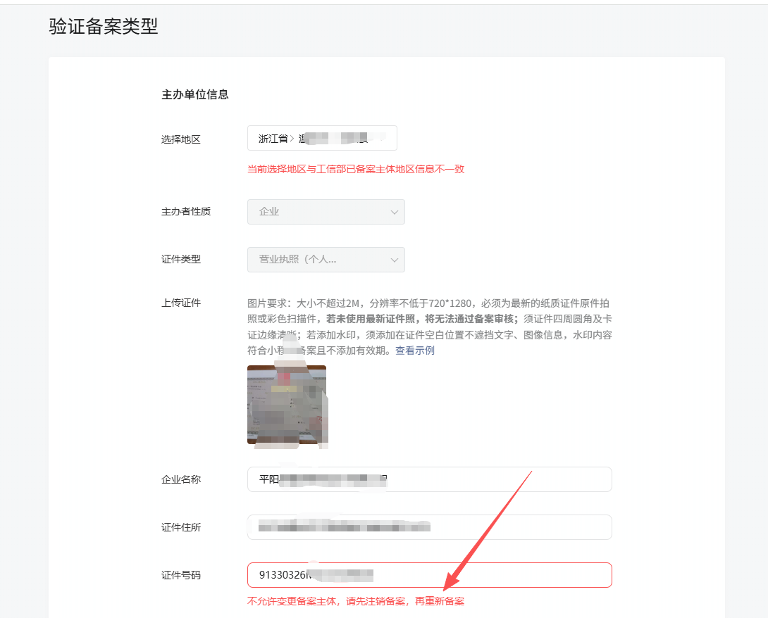 直接点变更没用用,传迁移后的新主体营业执照上去会显示不允许变更备案主体,请先注销备案,再重新备案