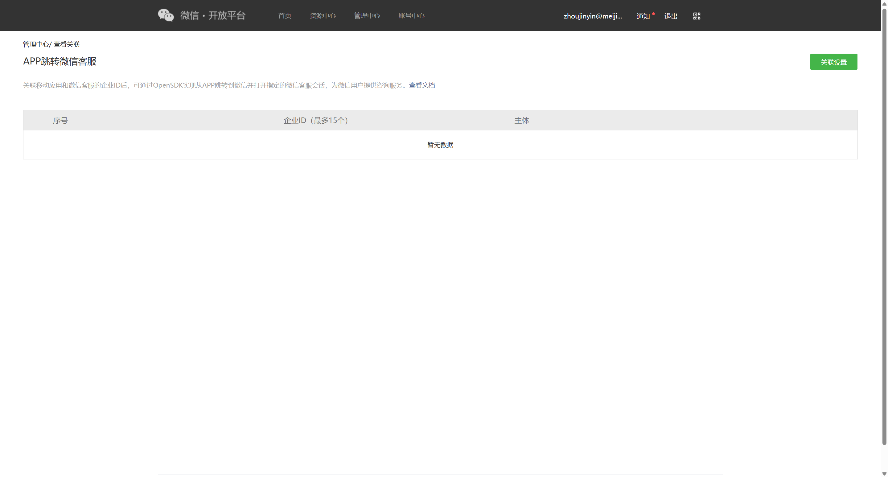 我们在开放平台上面有一个应用程序,这应用程序是A公司主体的,但是现在我们想在这个APP上面接入微信客服;这个微信客服是B公司主体下面的。