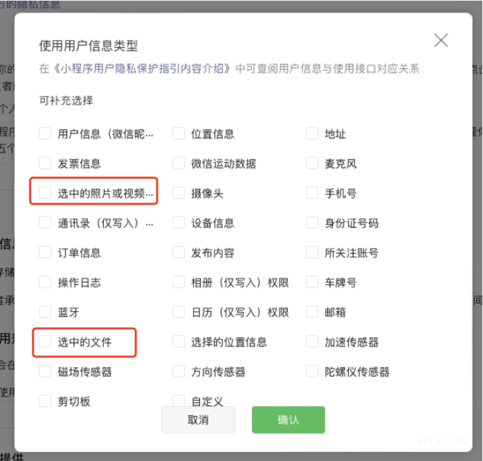 排查下是否有在小程序[mp后台 -> 设置 -> 服务内容声明 -> 用户隐私保护指引]里面声明【收集你选中的照片或视频信息、收集你选中的文件】,如果没有声明,建议尽快补充该隐私类型声明,待审核通过后,过一段时间再试。可参考公告:https://mp.weixin.qq.com/s/Vvj5nOTywoj1KlF726XIkg