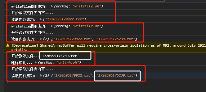 - 新建文件, 生成了文件 1720...0922.txt文件,新建成功后调用readdir读取文件夹内容,返回数据,只有一个刚创建的文件