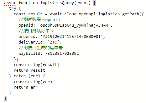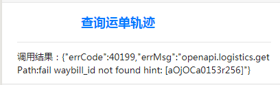 2、生成的73123817925092这个运单号,调用logistics.getPath,返回错误,如下图: