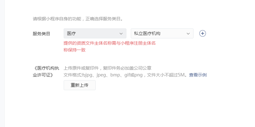 我们营业执照上的公司名称是合肥**医疗门诊有限公司,上传的《医疗机构执业许可证》上的医疗机构名称是合肥包河**中医门诊部,然后审核不通过,看下图: