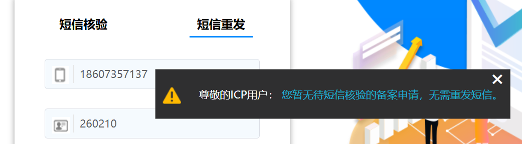 小程序备案初审通过已超过3小时,未收到核验信息,去ICP政务平台重发短信提示“无待短信核验申请”,很着急 小程序目前在几百家店使用如果被停了影响很大,可以联系谁处理吗??手机及证件号都没错。