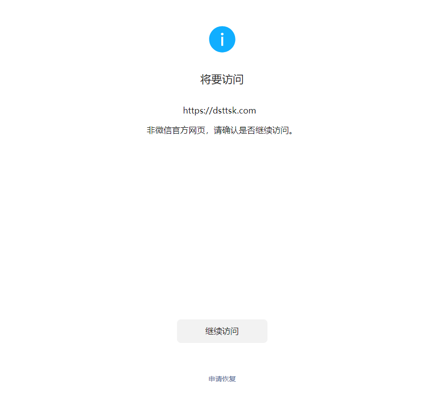 尊敬的微信开发社区管理员,本人域名: dsttsk.com。刚建立个人网站,在微信点了几下就出现了拦截:继续访问,被拦截。