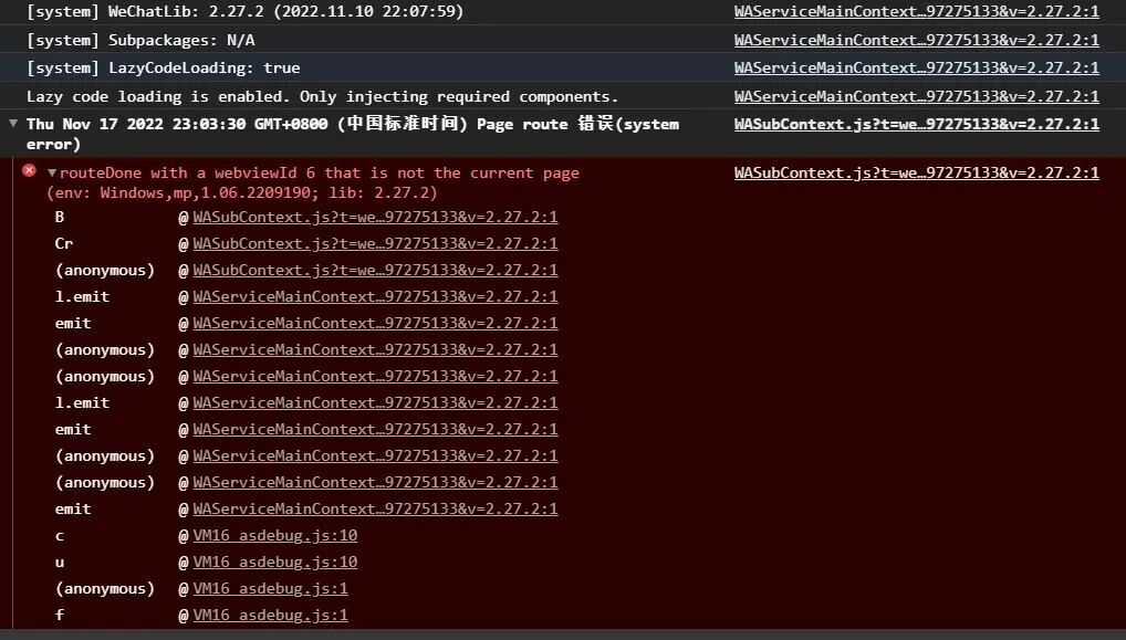 routeDone with a webviewId 6 that is not the current page(env: Windows,mp,1.06.2209190; lib: 2.27.2)
