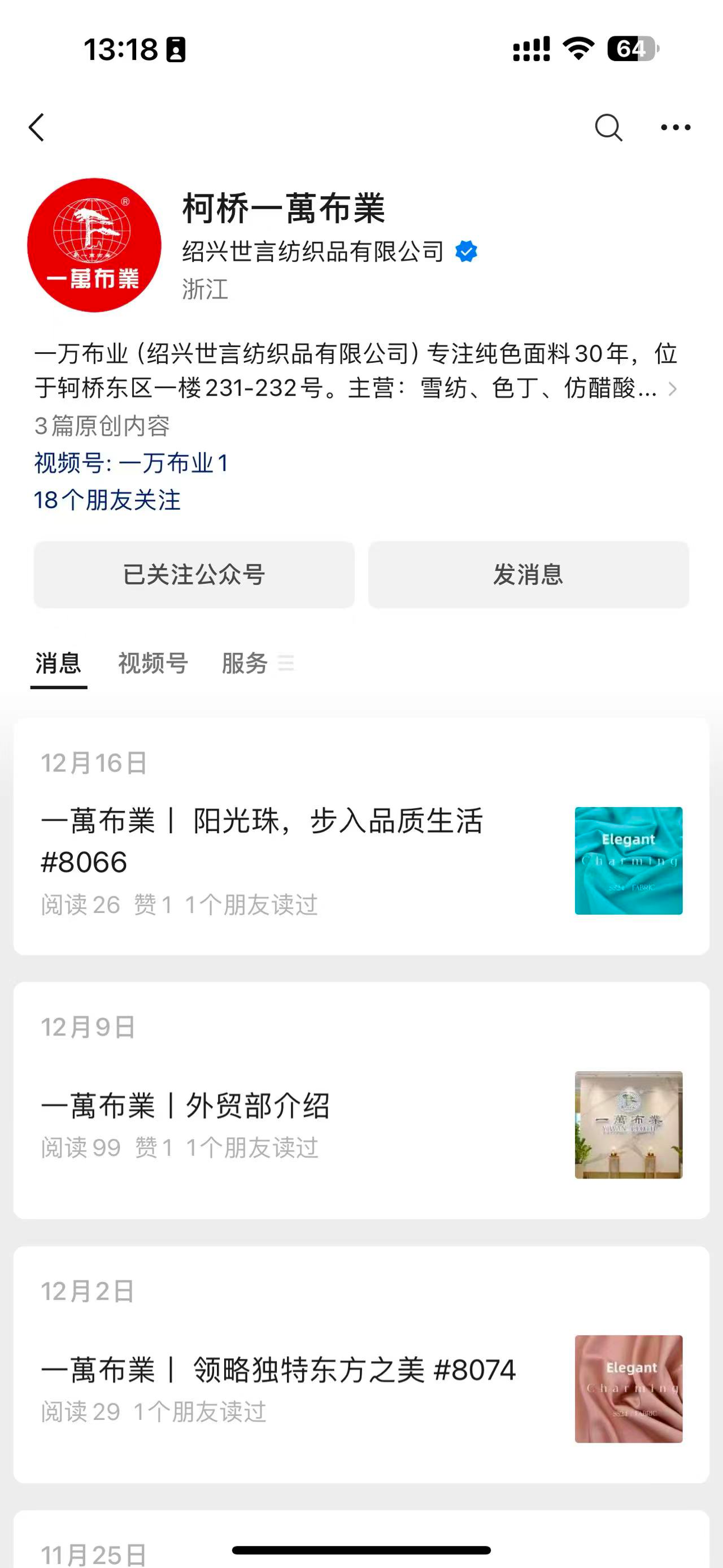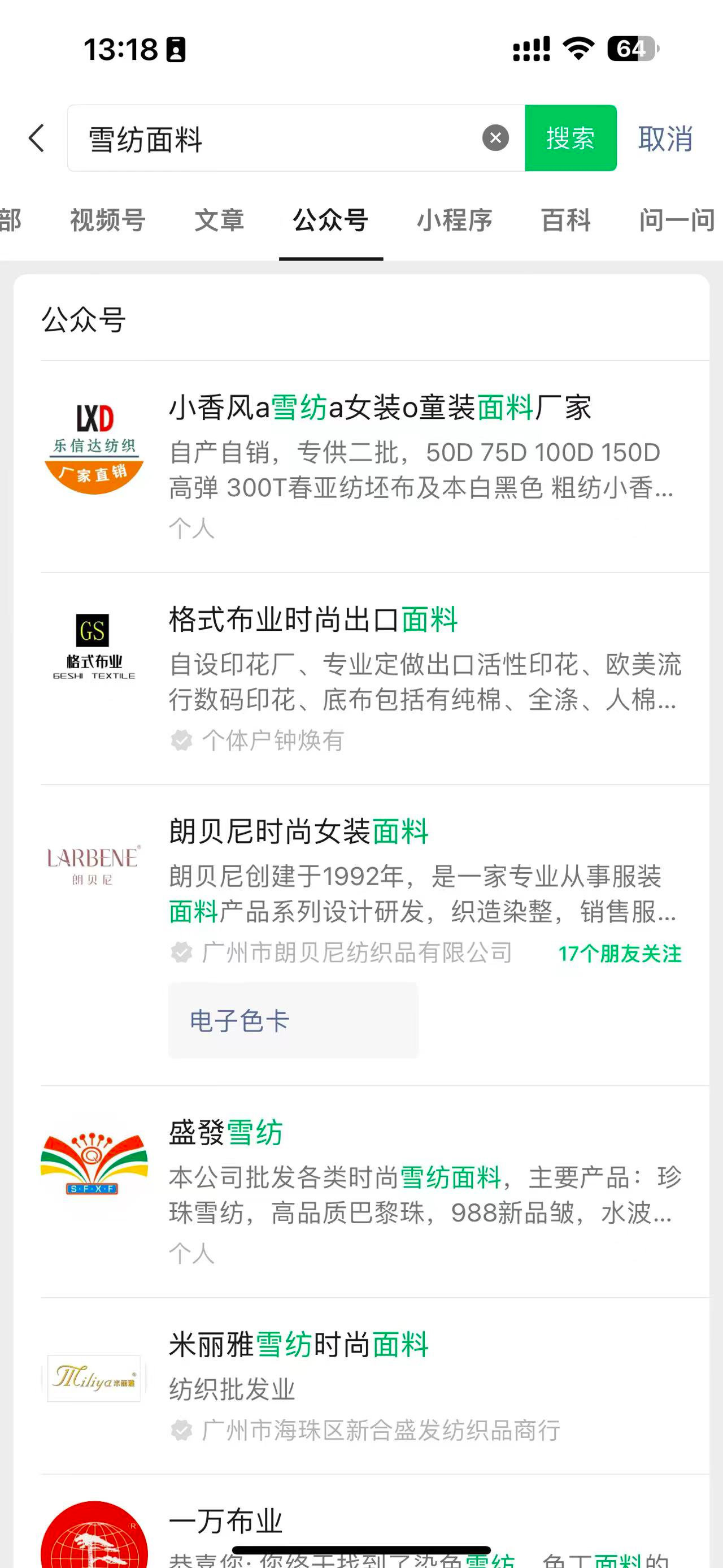 我的搜索关键词包含“雪纺面料 ”,我的公众号简介里面也包含“雪纺面料”,为什么我搜索的时候搜不到我们家的公众号