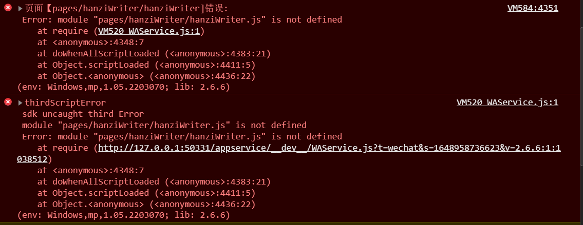 app.json配置后开始报错,之前另配了个小程序 移接到总小程序时出错了