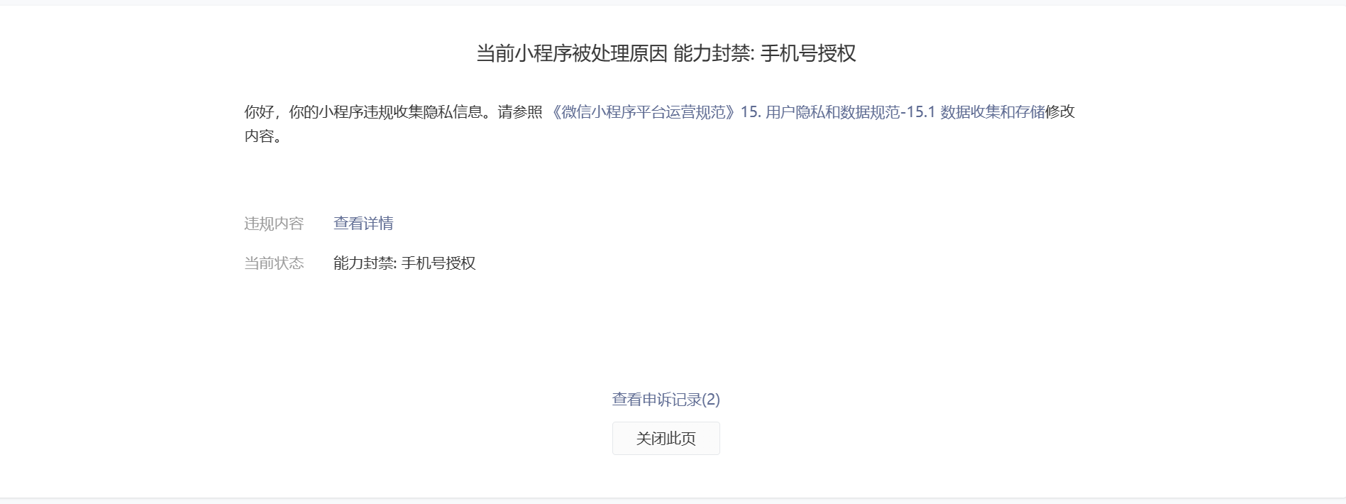 经核实 小程序已作出整改 已撤销处罚