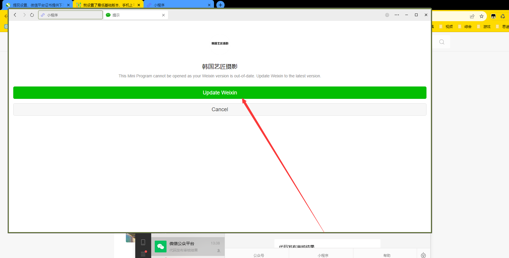 电脑端基础库还没那么高,比如你设置的最低是10,但是电脑端最新的才是8,也没法升级,所以目前没办法解决,你设置的最低基础库调低一点吧