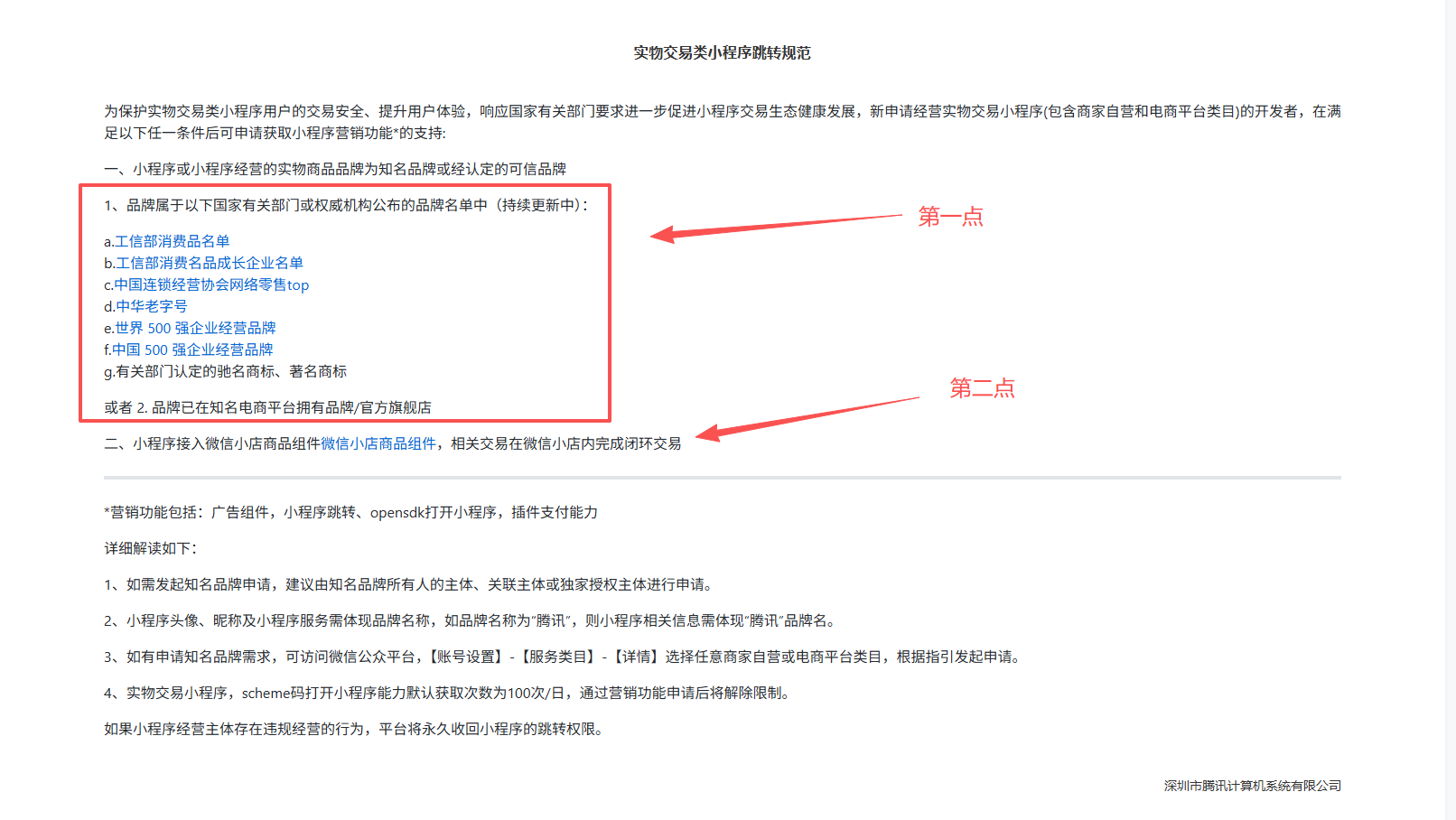 2.若小程序不为知名品牌,可通过接入微信小店商品组件申请获取小程序营销功能,但需关闭小程序支付能力。