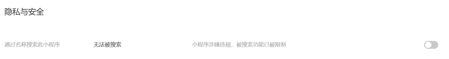 在小程序后台--右上角【铃铛】图标--点击进入通知中心,查看站内信,里面有一条是违规处罚并封禁你的【被搜索】能力的站内信,查看违规原因并处理,然后再【申诉】