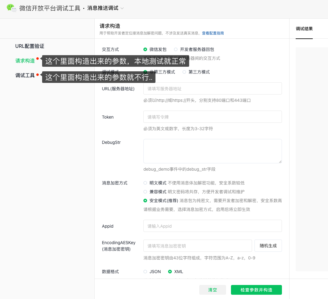 "请求构造" 中拿的发送包体和请求URI,在本地测试 xml格式,正常