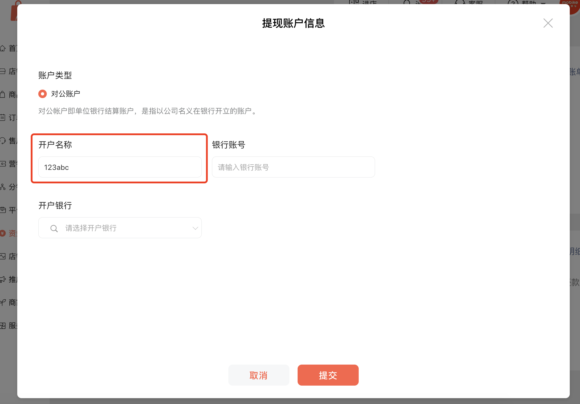 微信小商店营业执照上的公司名称已经更换成功,原来的名称没有办理对公账号,新的名称 办理的对公账号,但是提现绑定银行账户时提示的需要绑定就得公司名称对应的对公账号,这个怎么解决。商户主体信息已经更改完成