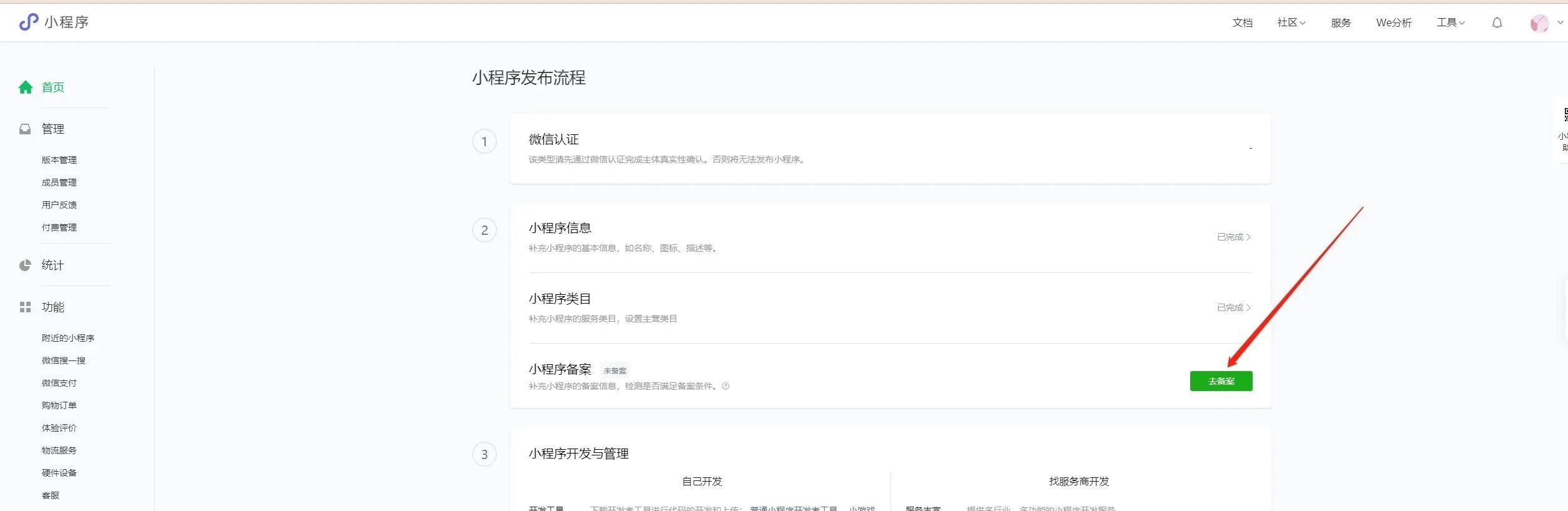 并没有找到小程序备案入口