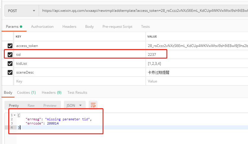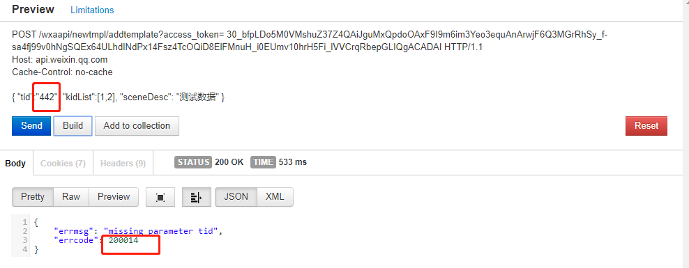 "errmsg""missing parameter tid""errcode"200014
