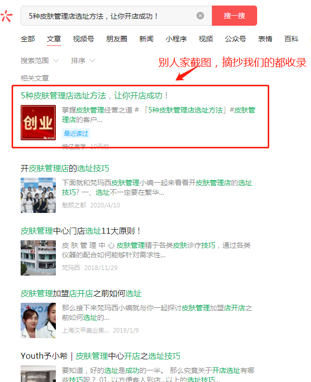 比如,这篇文章:5种皮肤管理店选址方法,让你开店成功!