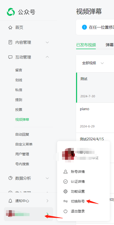 我企业有个公众号,我个人有个公众号,怎么切换打开?