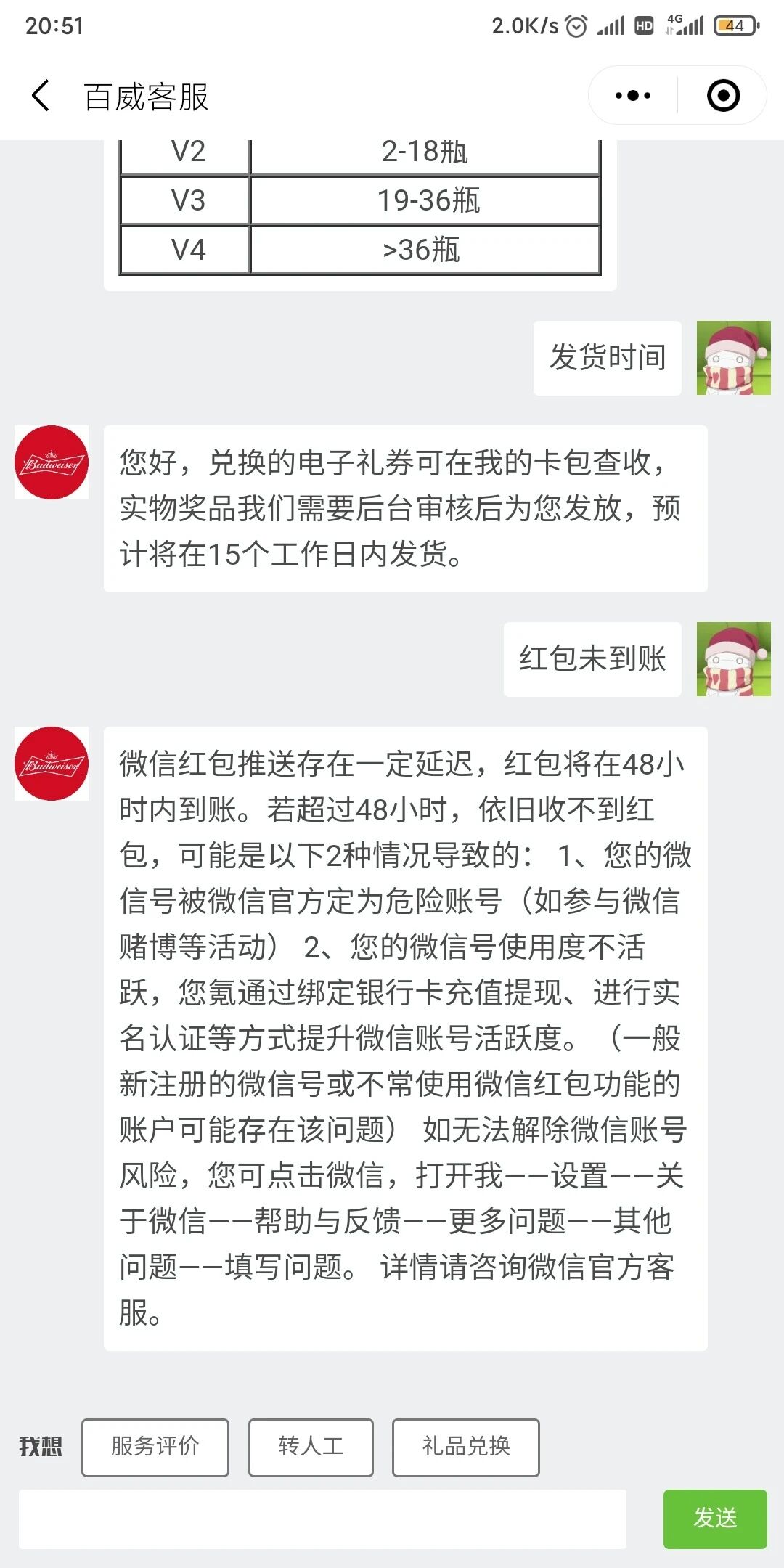我参与了百威空间站的活动,扫码可以领红包,所有从空间站里面发出来的红包我一个也收不到,但是人家确实是发了红包的,只是我收不到,我的另一个微信号是可以收到的,我这个号可以正常接受别人发给我的转账和红包,但是来自小程序的是收不到的,这个号很少用,,要怎么解决这个问题呢