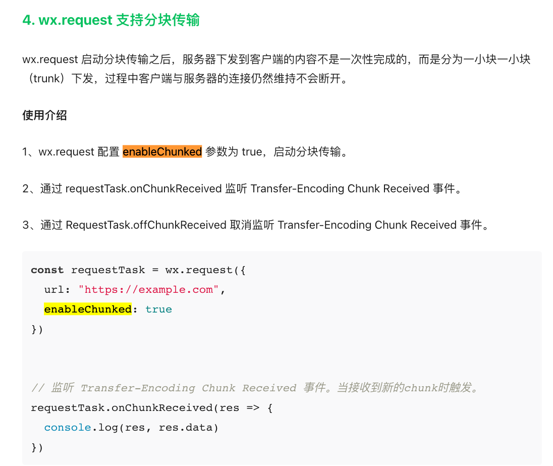 最近项目上需要一个简单的通知,用websocket太重了,我看社区一直也有人问sse的支持情况,这都2024年了 各种ai都是基于sse做的,微信小程序啥时候支持sse,别说那个分块通知,原生模式的和兼容模式能一样吗?