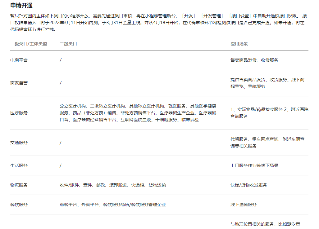 wx.getLocatioin加服务类目和应用场景限制了,自己看文档对一下,提交的申请要符合文档上的说明