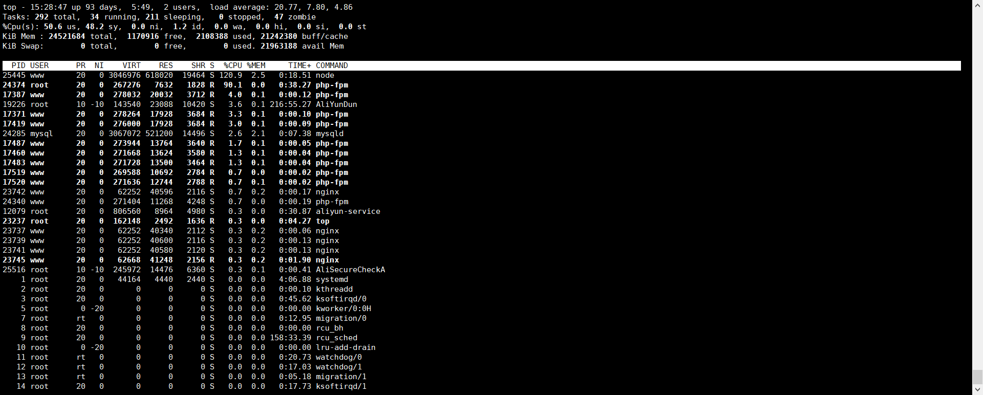 开发中需求是后台自动上传代码,所以使用node.js进行代码上传,使用PHP的exec进行命令行控制,但是使用过程中出现cpu达到100%的情况;