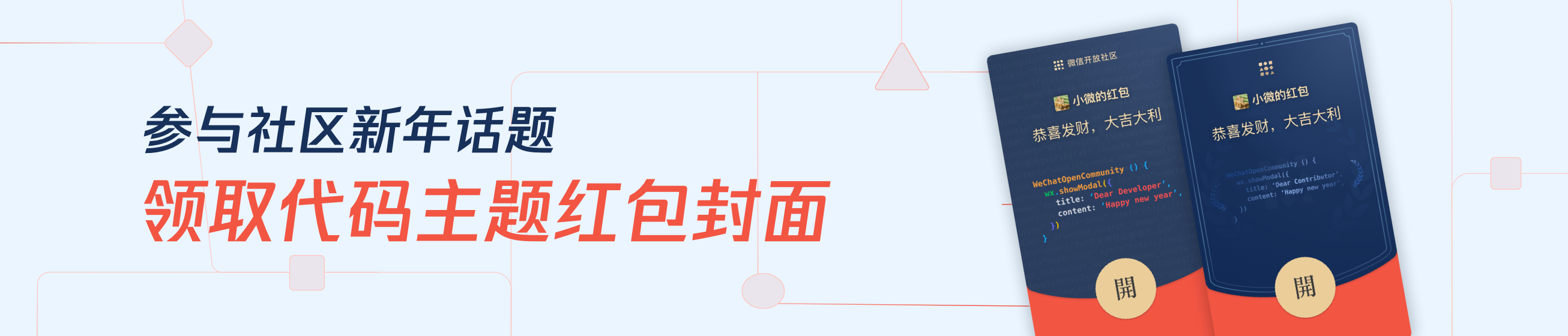 2月9日到2月10日,每天早上10点24分,将在公众号「微信开发者」限量派发社区纪念版开发者风格新年红包封面 🧧