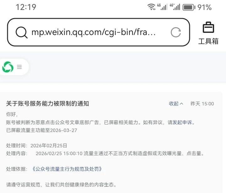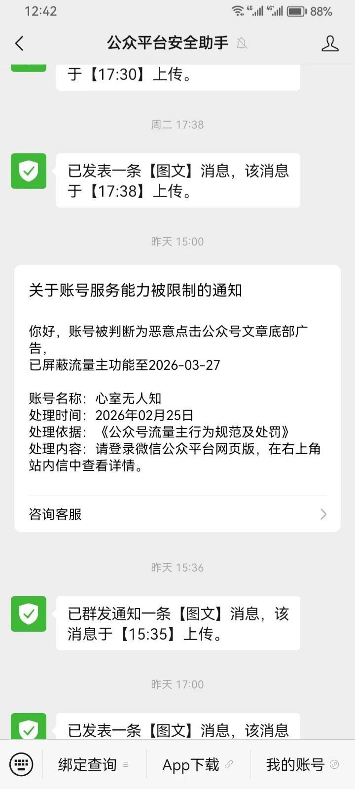 怎么说我恶意点击广告,我自己怎么做到的我都不清楚,还把我所有广告权限都封禁了,什么意思什么都没做,就恶意贴标签,自己新申请的账号,还在慢慢摸索,没做什么就突然封禁,要封禁多久,还是永久封禁,不能解封,能注销了吗,有什么影响,注销以后还能重新注册公众号吗我就纳闷了
