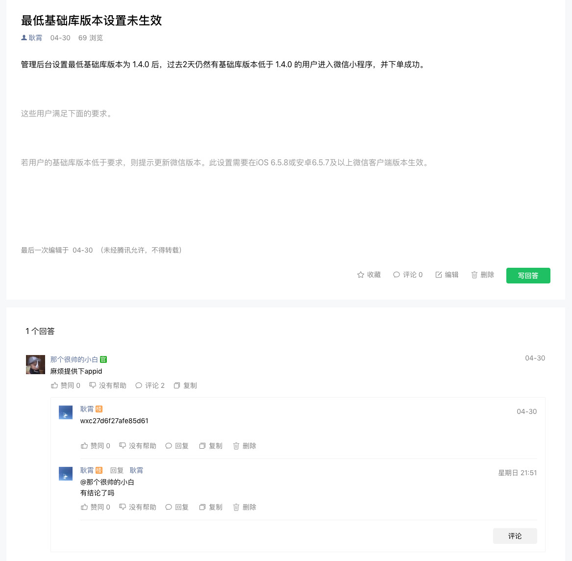 4月30号的提问链接:https://developers.weixin.qq.com/community/develop/doc/000e2aeb870d4876b4787646156c00