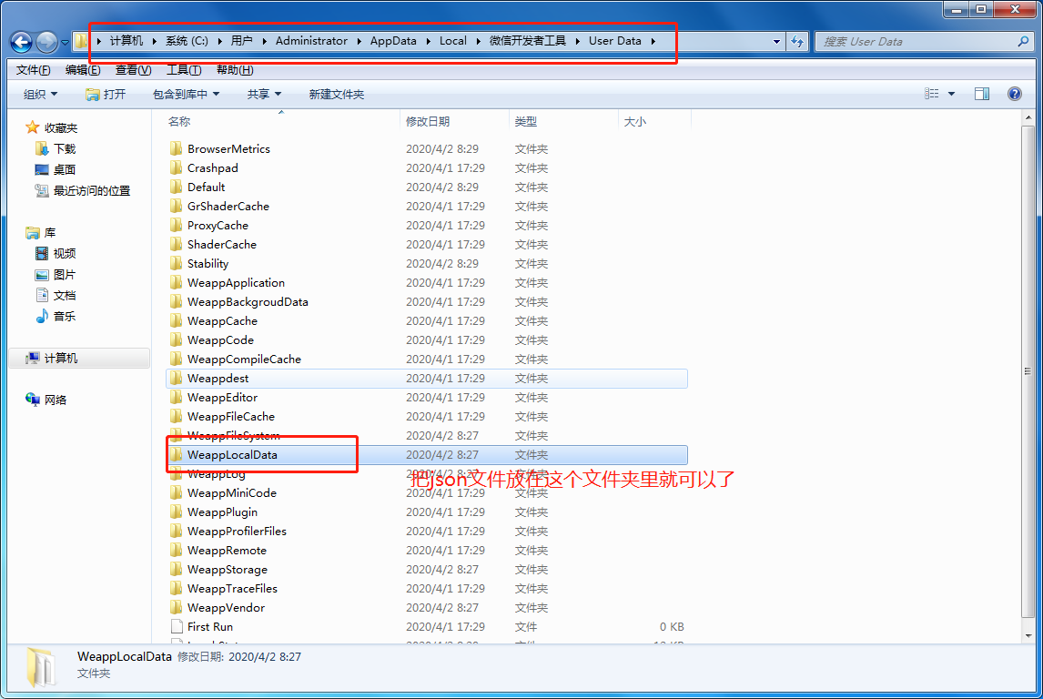 我的搞定了,刚开始也是找不到上述同仁说的文件名和文件夹,然后我就在C盘里搜索WeappLocalData,果然搜索到了,打开后就找到了localstorage_b72da75d79277d2f5f9c30c9177be57e.json文档,把里面的所有文字都删掉,复制了一楼大代码进去,就可以了。不同的电脑可能文件位置不同,大家可以在C盘里搜索出来。
