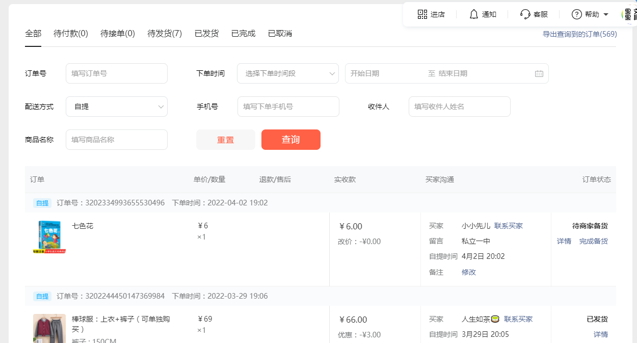 建议增加订货状态,当我们点完成备货后,订单状态变成备货完成( 并推送信息,客户随时知道订单状态,如果是自提,客户可以最是自提),