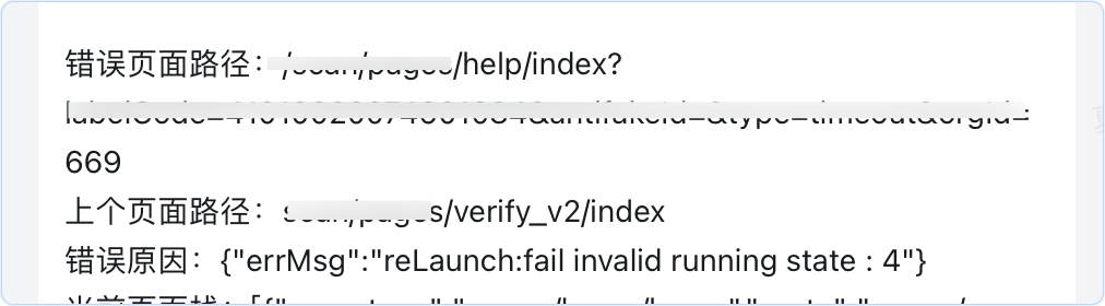 检查代码发现从 verify_v2 页面跳转到 help 页面,使用的是 redirectTo 方法,线上偶尔会有截图的报错信息