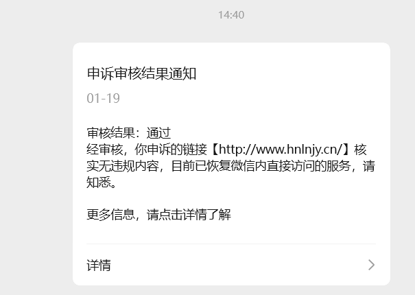 2026年1月16日和1月19日,提交过两次申诉,申诉后均收到官方回复:核实无违规内容,已恢复微信内直接访问服务,我们也验证了确实恢复直接访问服务,但均出现恢复后不到1个小时又被拦截。请问是什么原因?