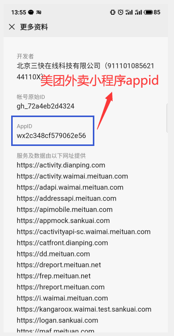 美团的appId:wx2c348cf579062e56