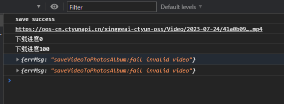 这个bug 又是什么原因导致的啊?失败机型iphone pro,安卓是正常的!跪求大神指点.... "saveVideoToPhotosAlbum() 这个API 也是鸡肋,都没有具体的错误提示,就TMD 失败了 ... saveVideoToPhotosAlbum:fail invalid video。此处是视频地址: https://oos-cn.ctyunapi.cn/xinggeai-ctyun-oss/Video/2023-07-24/41a0b09559c94493ac56da83b3307530.mp4