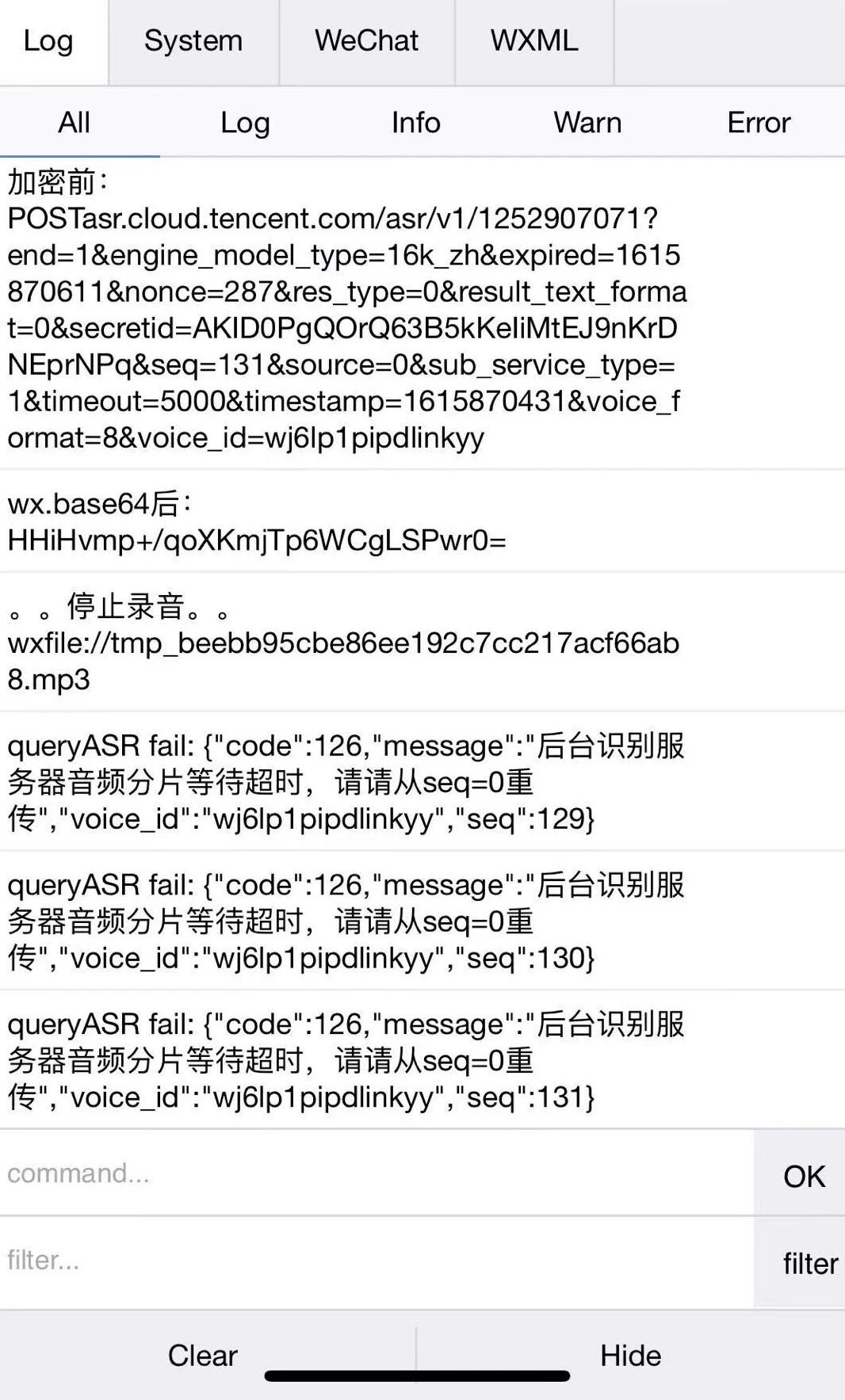 看截图可能是网络原因或者手机问题导致识别中断,出现此问题原因较多,请问最近有复现么?如果复现的话,麻烦提供最近复现的voice_id,这边方便查询下日志。