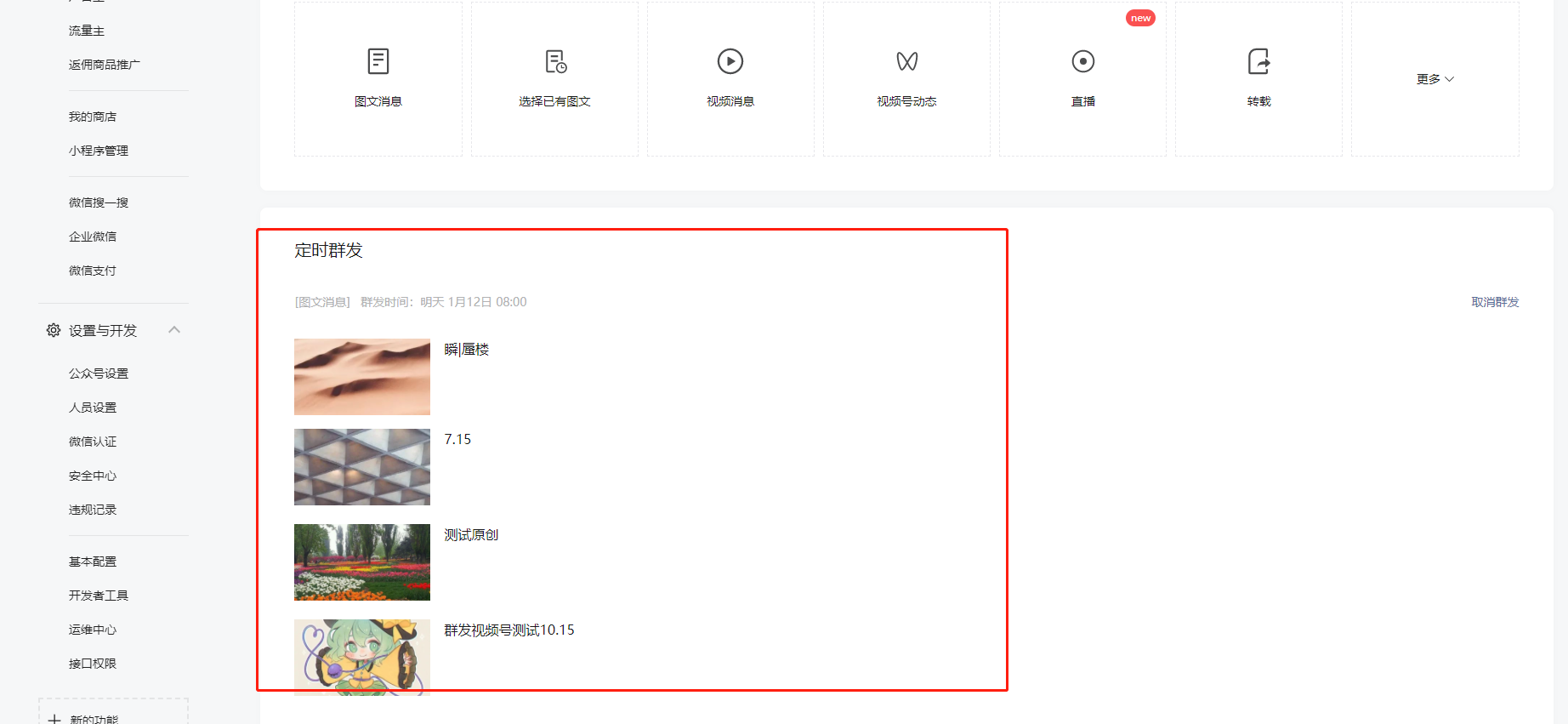保存的草稿定时群发之后突然不见了,发表记录里面也没有找到,想问一下怎么找到?还是可以先不用管它,等到时间了会自己群发?