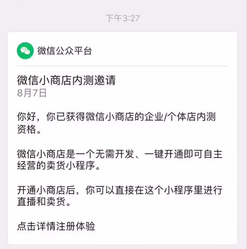 经过站内大神的指点,微信搜一下【小商店助手】,看到了申请界面,已成功开通,此情况的可以尝试一下