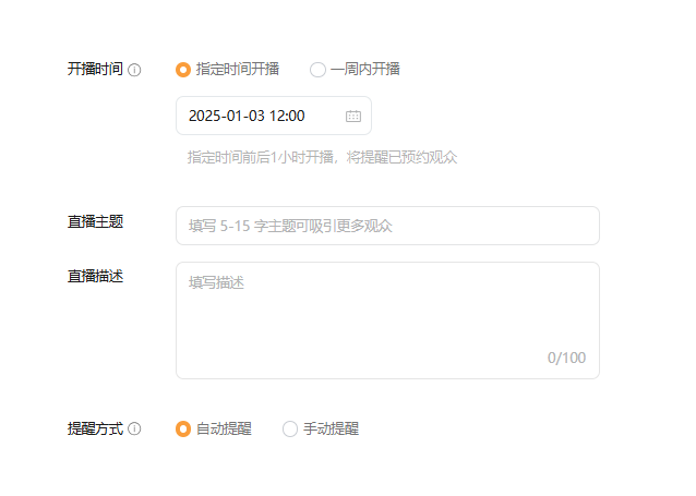 视频号后台没有上传直播预告封面的地方,最新的一条也没有返回 创建预告时填写的预告主题和预告描述也没有返回