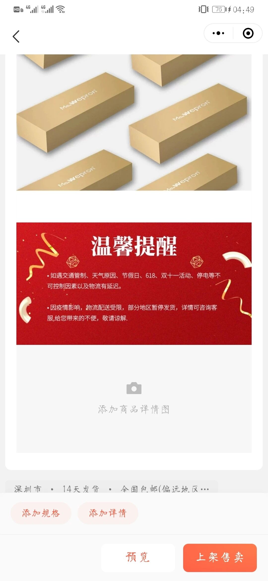 微信小商店添加商品详情图不能长按顺序图片,也不能放在前面图,重新上传找来找去好麻烦,希望加一个顺序图片功能,麻烦小商店助手官方看到,谢谢