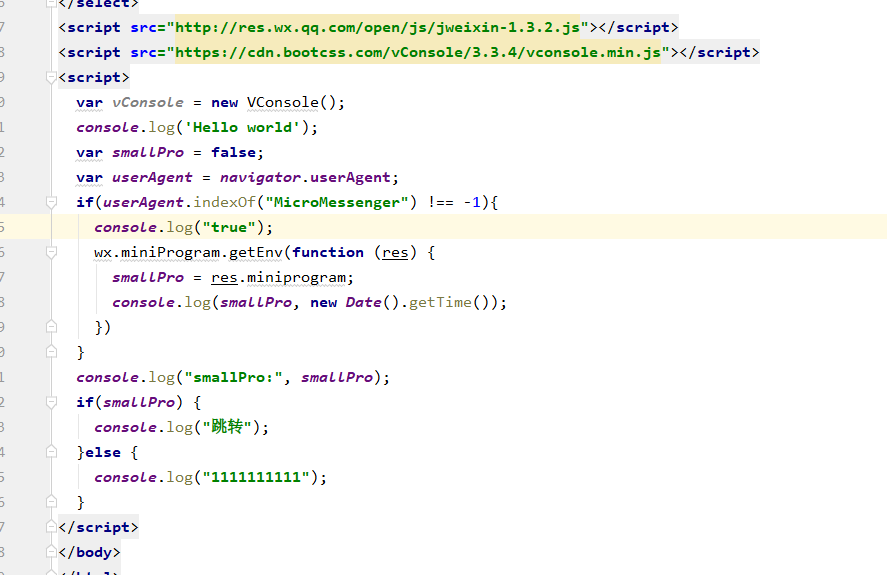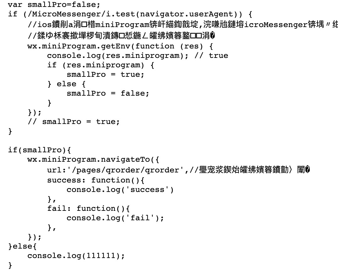 第一个判断显示的是在小程序中,但是下面的判断没有跳转,显示的111111?请问是什么问题?