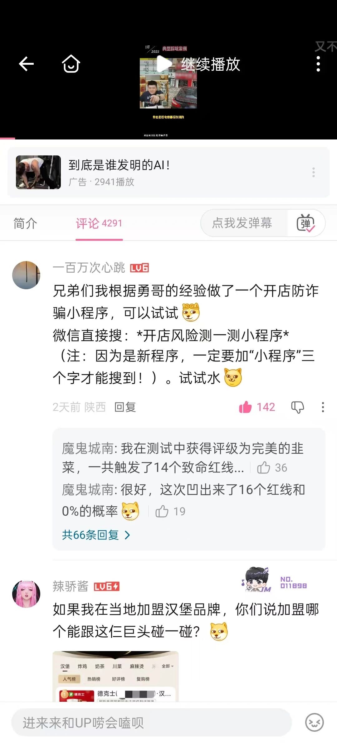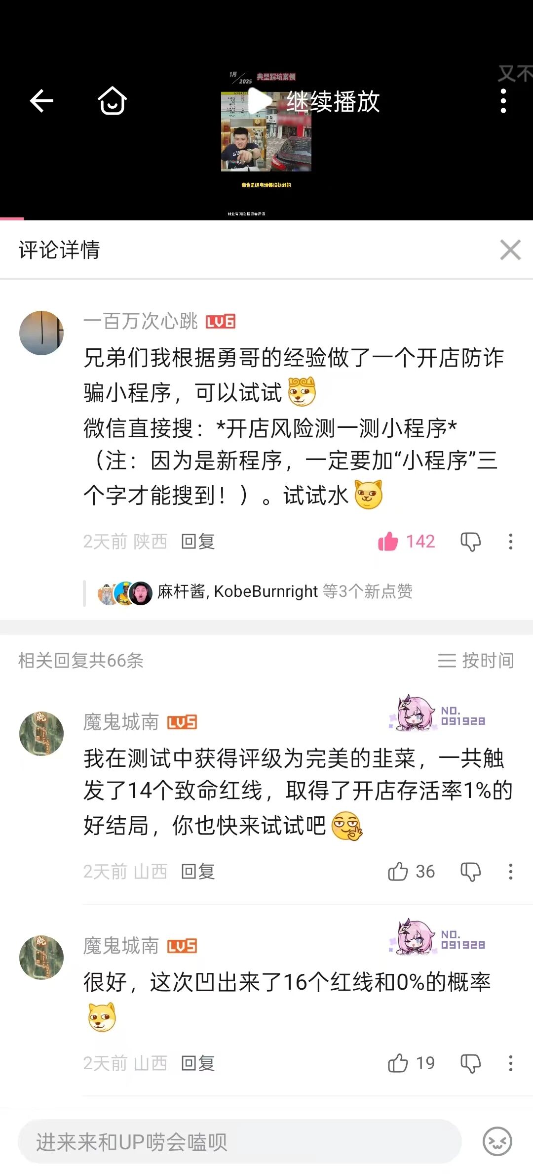 审核老师您好,今日小程序访问量激增并非机器刷量,而是因为我在b站勇哥视频下面评论的推广贴突然小火了两天(请见附件截图:帖子点赞量、互动量还有评论视频本身已经有了70万播放量)。 大量真实用户是看到帖子后,自发搜索进入小程序的。这解释了为何短时间内会有大量新用户注册,这完全是合规的自然流量,绝非恶意注册攻击。