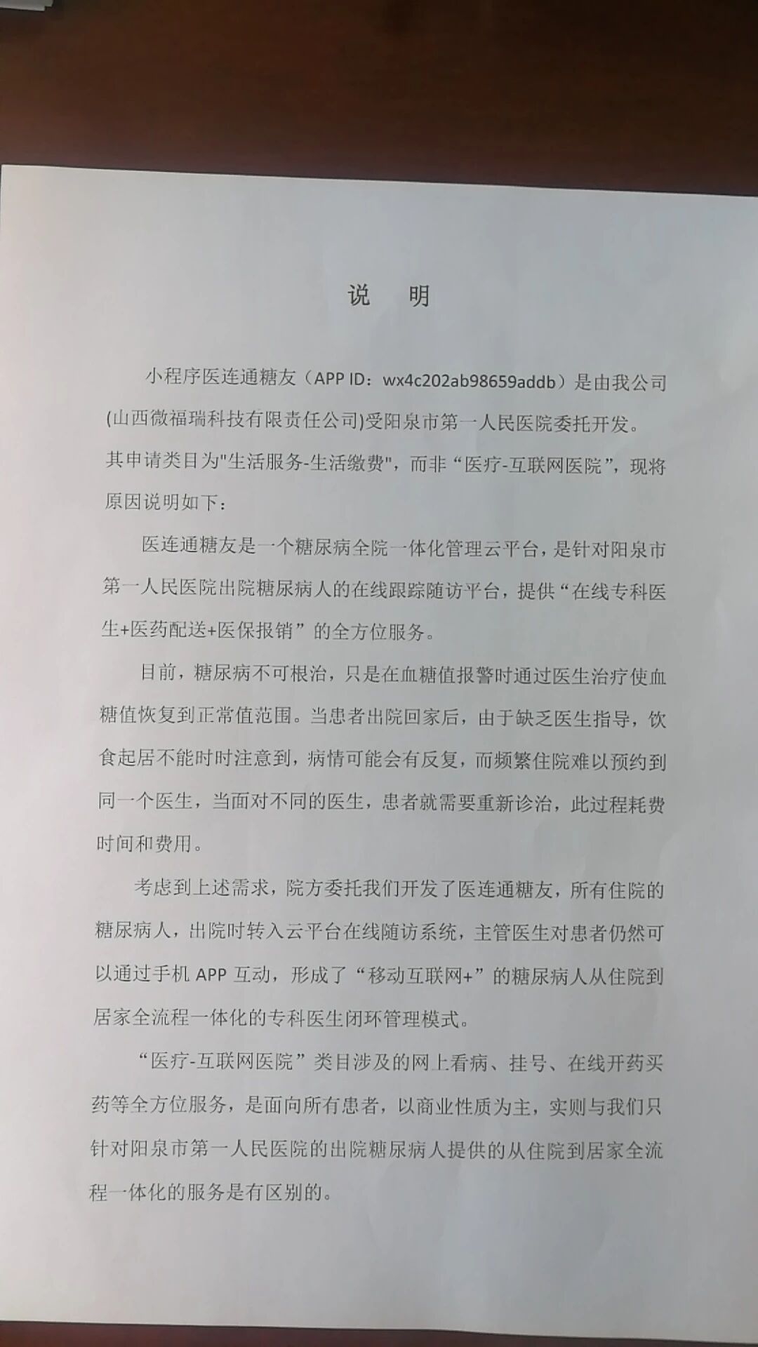 小程序按照类目审核要求,让我们选择的是互联网医院?但是我们应该是想要申述一下.我们已经起草了一份文件望过目
