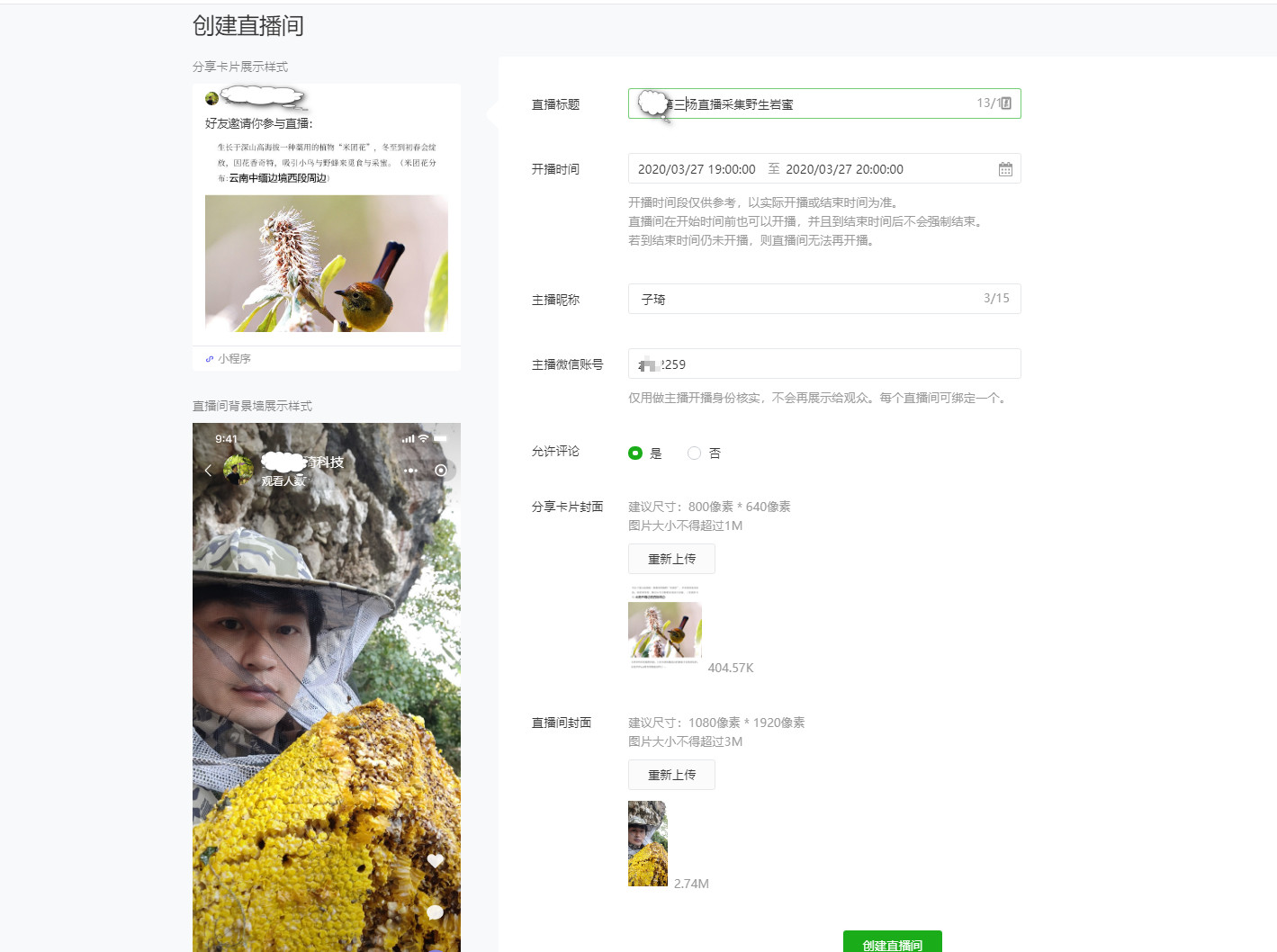 小程序直播功能中,直播间创建时,背景图按照要求尺寸制作后上传,边界会被裁掉,请问是否实际尺寸与要求不一致?