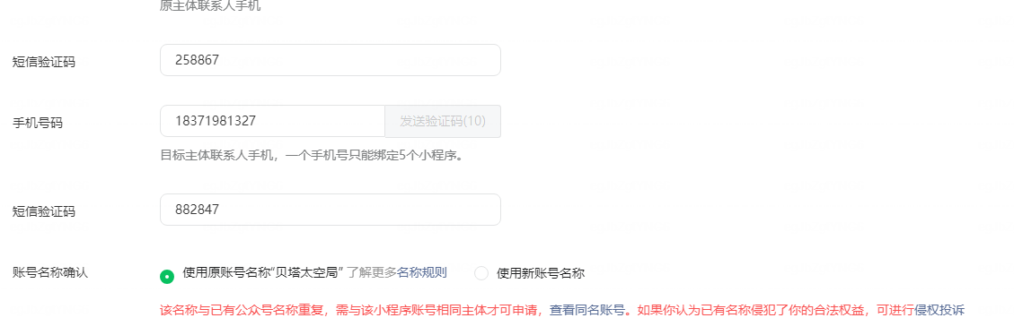 我们小程序的认证主体公司的营业执照已经被注销了,目前我们的小程序无法被正常访问,请问如何才能把小程序恢复正常,请附上具体操作流程?是走主体变更还是注销再重新申请?主体变更的时候提交完所有新主体的资料后,遇到最后一步阻碍,如果使用原账号名称提示与已有公众号名称重复,那么是先做小程序主体变更还是先做服务号数据迁移到新的目标主体上?现在很混乱,不知道怎么操作,如果有人工客服电话直接沟通,请提供一下,我需要电话沟通